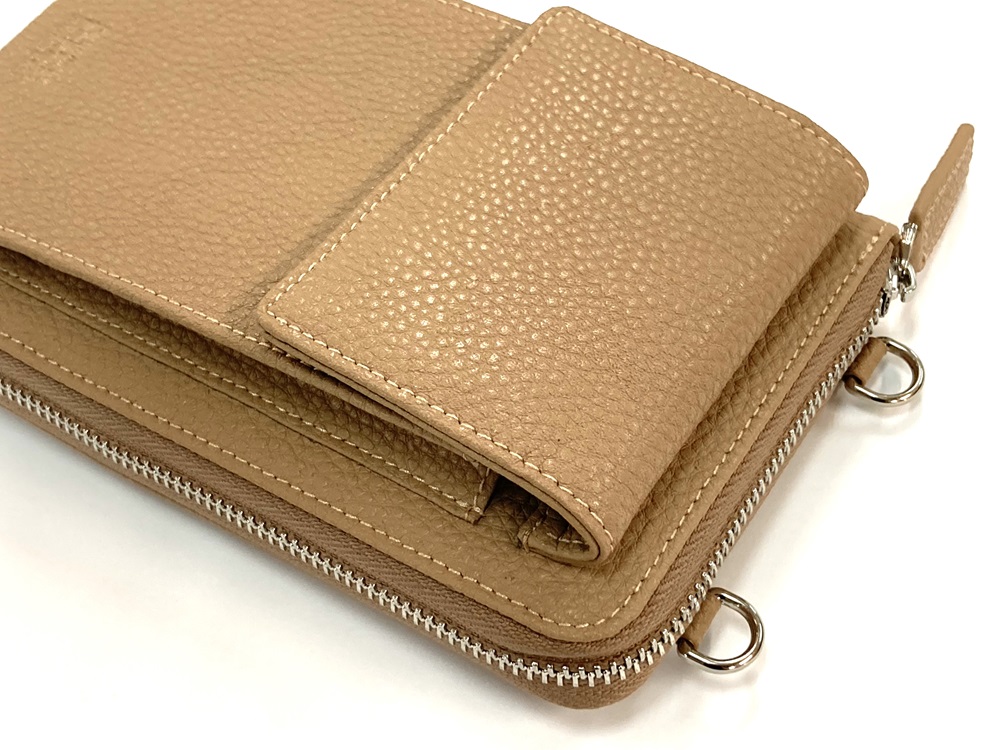 レザーの風合いを活かした高級感のあるスマホショルダーをオリジナルで製作します。SDGsを意識したリサイクルレザーの他、本革・合皮・再生PUなどを使用した商品の製作が可能です。名入れは型押し・箔押し・シルク印刷・インクジェット印刷などがございます。