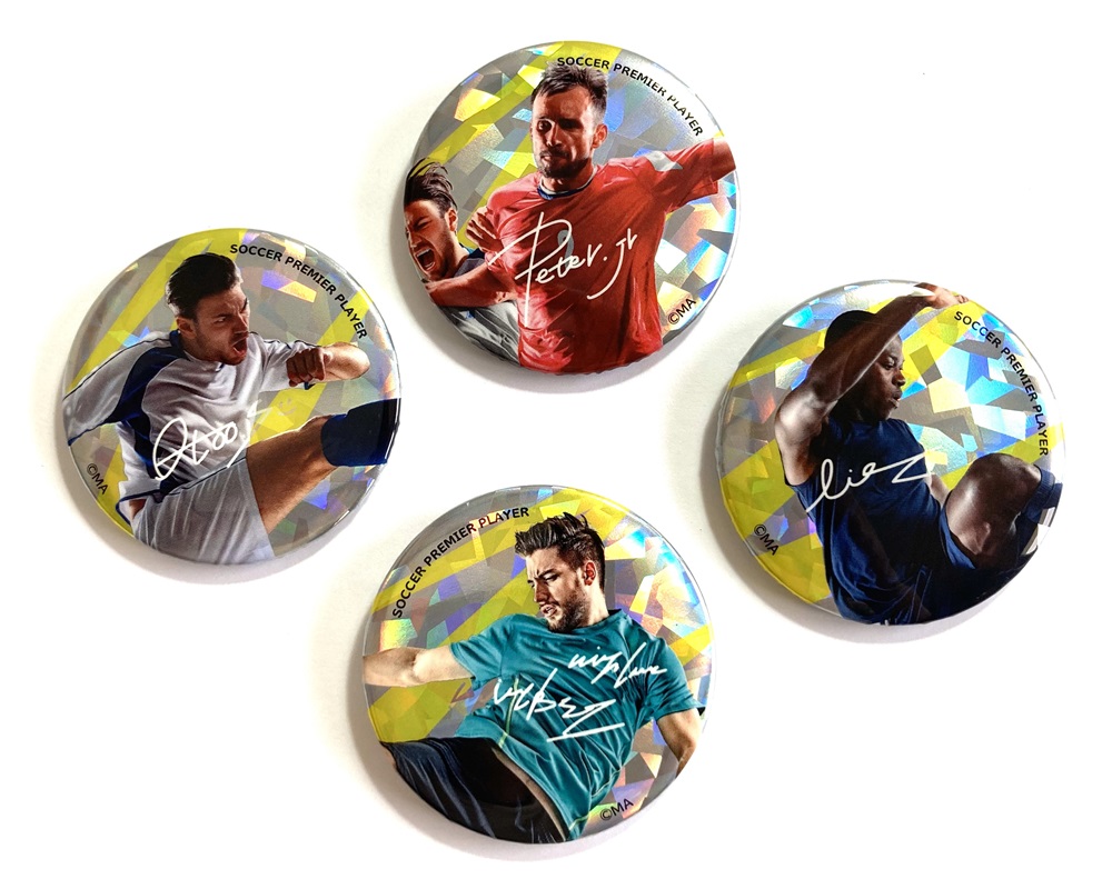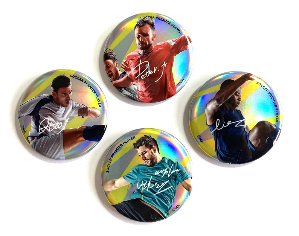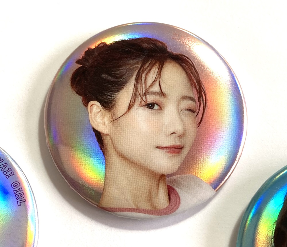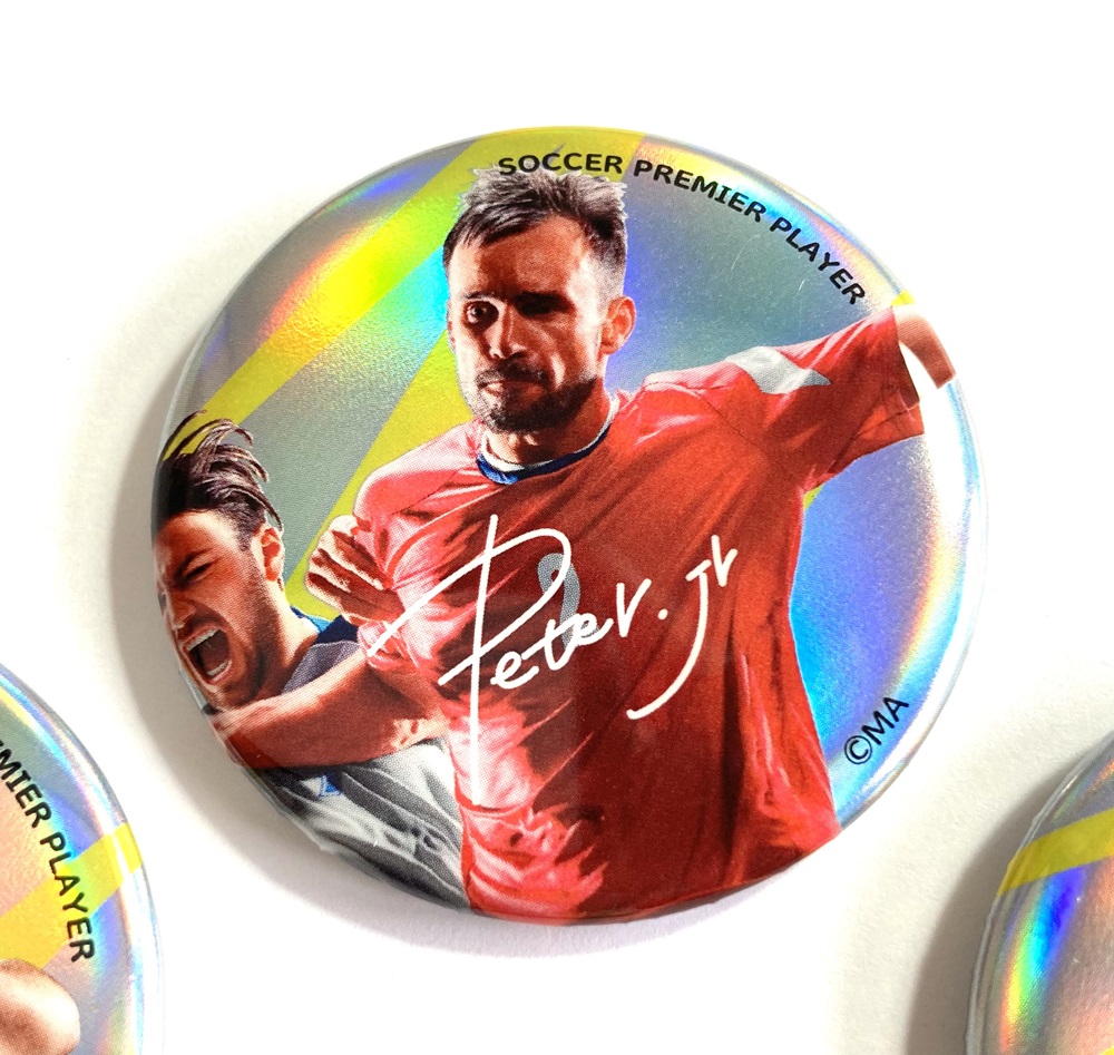 ホログラムを施した缶バッジです。キラキラとしたホログラムがとても綺麗でプレミアム感のある商品です。白を引いた部分にはホログラムがかからないため、キャラクターやロゴなどをハッキリと印刷したい場合は白引きをします。印刷は高精細のフルカラーオフセット印刷と小ロットでも製作可能なオンデマンド印刷からお選びいただけます。キャラクターの魅力を更に引き立たせることができ、写真やイラストをそのまま表現できて種類も豊富なため、グッズの定番品となっています。特典グッズやコレクショングッズとして大人気の商品です。