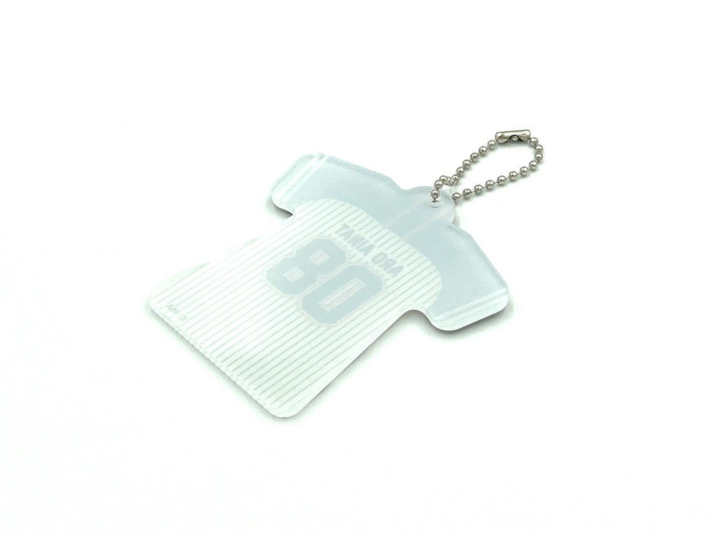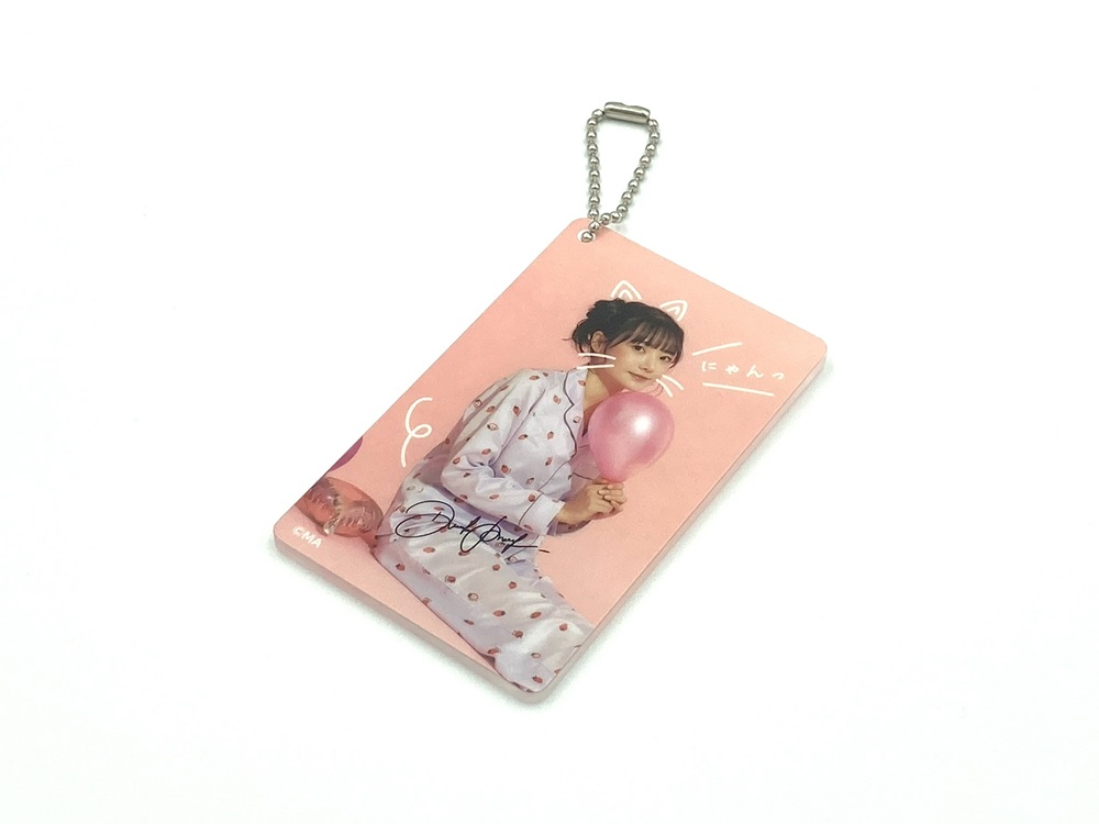 高精細のフルカラー印刷を施したアクリルキーホルダーです。白を引かない部分はクリアなデザインにする事ができます。印刷は高精細のフルカラーオフセット印刷なので写真やグラデーションのある繊細なデザインや鮮やかなカラーも高品質に再現します。また印刷面が内側になり保護されるため印刷が削れず劣化が少ない商品です。カット面も仕上がりが滑らかで触り心地も良く綺麗です。オフセット印刷はクオリティが高く、他の印刷法とは一味違う美しさと鮮やかさがあるため色指定のある版権キャラや肖像などの販売グッズに最適です。