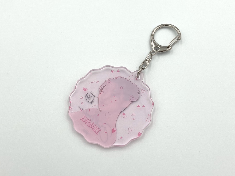 高精細のフルカラー印刷を施したアクリルキーホルダーに両面印刷が出来ます。裏面(2層目)に白引きをしなければ表面から裏面のデザインが透けて見えるため、2層でのデザイン表現が可能です。印刷は高精細のフルカラーオフセット印刷なので写真やグラデーションのある繊細なデザインや鮮やかなカラーも高品質に再現します。また印刷面が内側になり保護されるため印刷が削れず劣化が少ない商品です。カット面も仕上がりが滑らかで触り心地も良く綺麗です。オフセット印刷はクオリティが高く、他の印刷法とは一味違う美しさと鮮やかさがあるため色指定のある版権キャラや肖像などの販売グッズに最適です。
