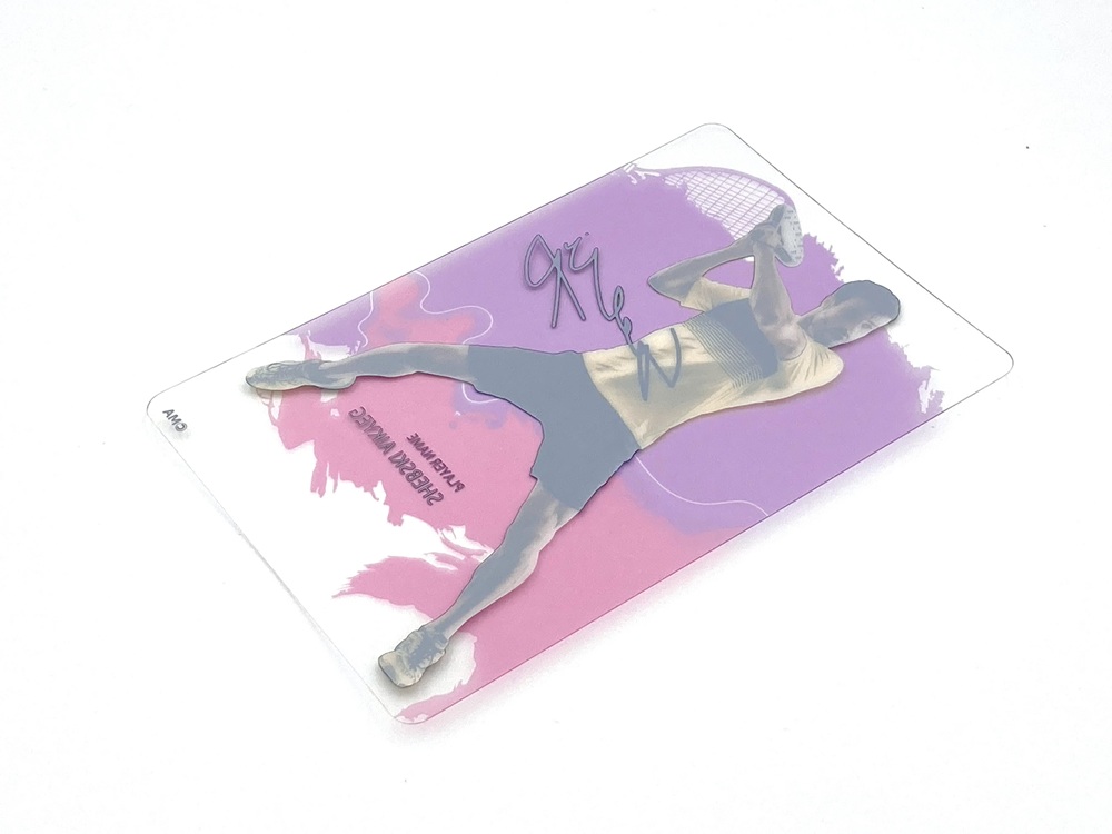 透明度の高いPETを使用したポストカードサイズのクリアカードです。白を引かない部分はクリアなデザインにする事ができます。紙とは一風変わった透明感を演出できます。印刷は高精細のフルカラーオフセット印刷なので写真やグラデーションのある繊細なデザインや鮮やかなカラーも高品質に再現します。素材は透明度が高く耐久性もあるA-PETを使用しております。スポーツ選手やアニメキャラクター、アイドルなどのカードをはじめ、ポストカードやミニ下敷き等幅広くご利用いただけます。また箔押しやホログラム加工も可能ですので、お問合せくださいませ。