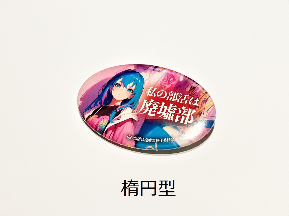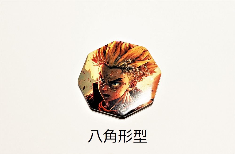 変形型の缶バッジがオリジナルデザインで製作可能です。様々な形状があるためオリジナリティ溢れる缶バッジが製作できます。印刷は高精細のフルカラーオフセット印刷なので写真やグラデーションのある繊細なデザインや鮮やかなカラーも高品質に再現します。キャラクターの魅力そのままのグッズにすることができます。写真やイラストをそのまま表現できて種類も豊富なため、グッズの定番品となっています。PRグッズやコレクショングッズとして大人気の商品です。