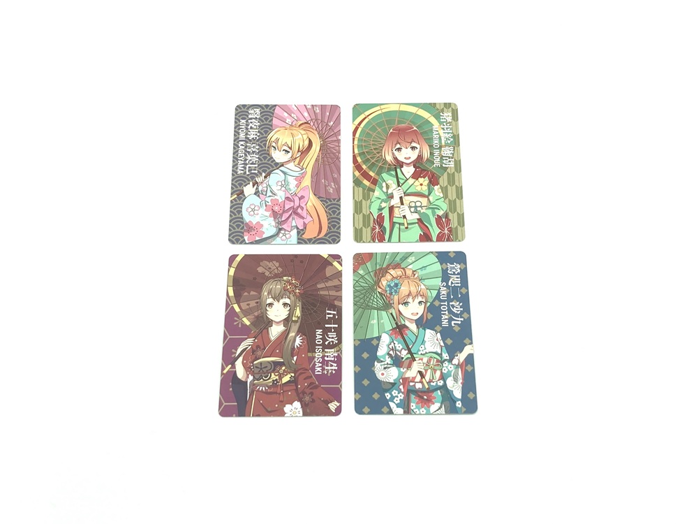 老若男女問わず今や日本の文化にもなったトレーディングカードは日本のみならず海外でも人気の商品です。そんなトレカをオリジナルデザインで製作ができます。弊社では様々なジャンルのトレカを製作しております。アニメやゲームグッズではキャラクターを使用したトレカを印刷からアッセンブリまで製作しております。アイドルグループのトレカではPP加工やホログラム加工・箔押しなど様々な種類を製作しております。スポーツグッズでは選手の情報を入れた選手カードやファンクラブ特典のトレカなどを製作しております。紙製以外にも透明素材を使用したクリアトレーディングカードも取り扱いがございますので、お問合せくださいませ。