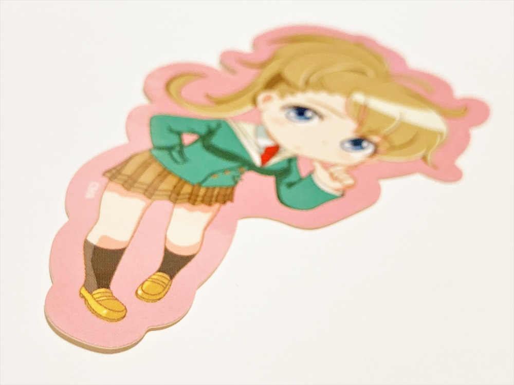 オリジナルデザインのステッカーをお好きな形状にダイカットする事ができます。印刷は高精細のフルカラーオフセット印刷なので写真やグラデーションのある繊細なデザインや鮮やかなカラーも高品質に再現します。表面加工は全面にPP貼りが可能で、光沢のあるグロスPPや艶消しのマットPPがあります。また見る角度によってキラキラと輝くホログラムPPも可能です。また素材も通常のタック紙の他にホログラム紙もあります。ホログラム紙の場合は紙の上から印刷するため、白引きをすれば絵柄にはホログラムがかからない仕様にすることができます。イベント会場のPRグッズ・特典グッズやコレクショングッズとして大人気の商品です。