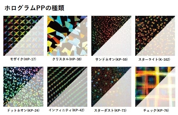 ※ホログラムPPの種類:モザイク2/クリスタル/サンドネオン/スターライト/ドットネオン2/インフィニティ/スターダスト/チェック